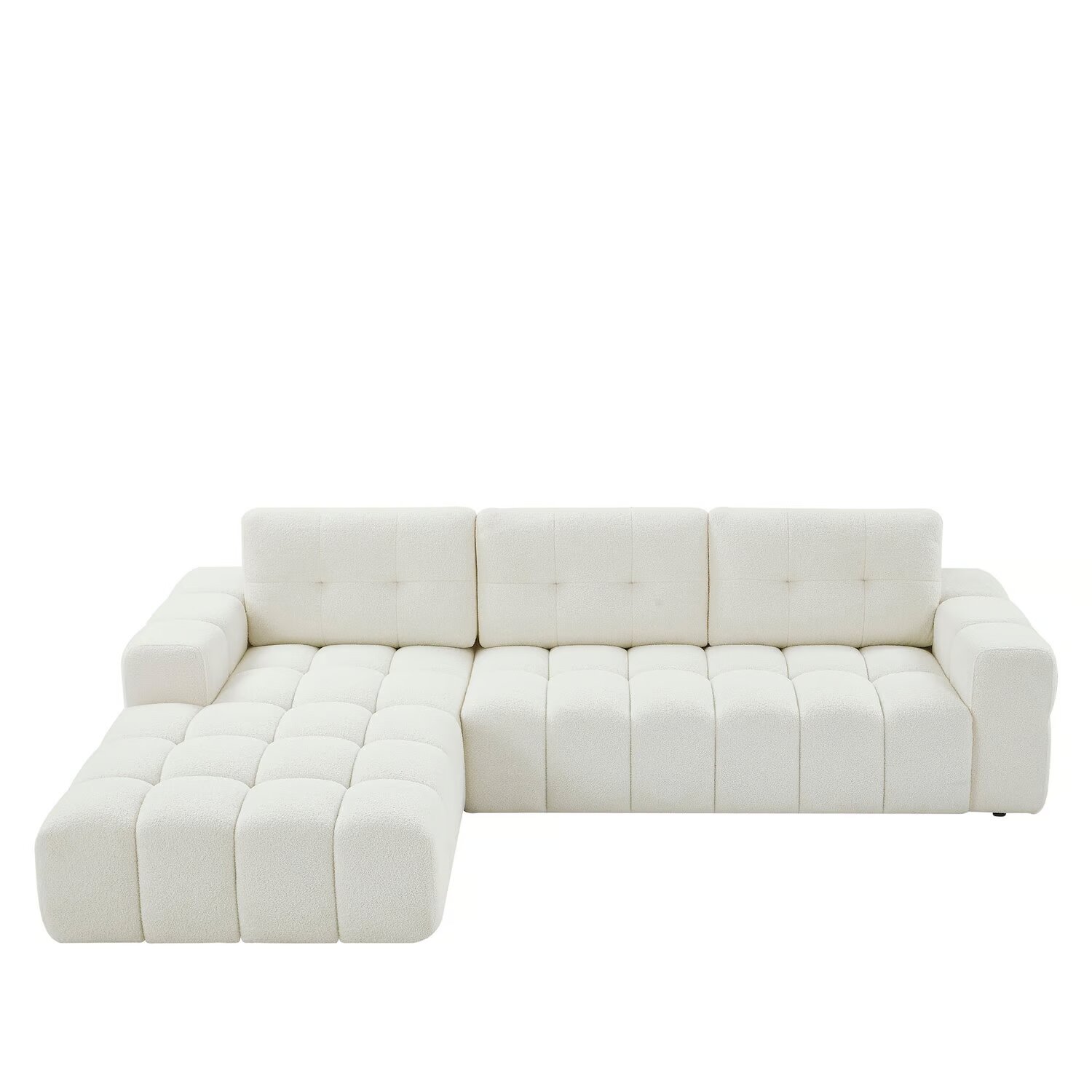 Sofá rinconera – Esquina izquierda – Tela bouclé – Blanco – SOPELANA
